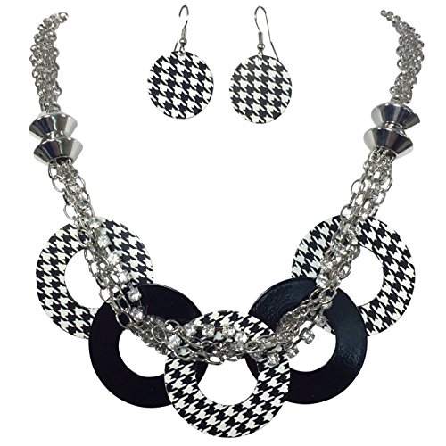 -. Title : Unique Houndstooth Rings & Rhinestone Silver Tone Necklace & Dangle Earrings Set Alabama Crimson Tide