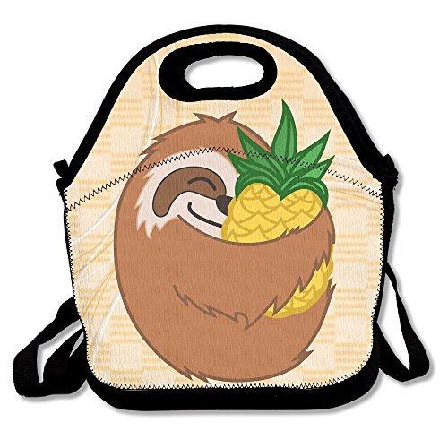 Pineapple Sloth Waterproof Lunch Tote Bag Portable Picnic Lunch Box Lunch Pouch