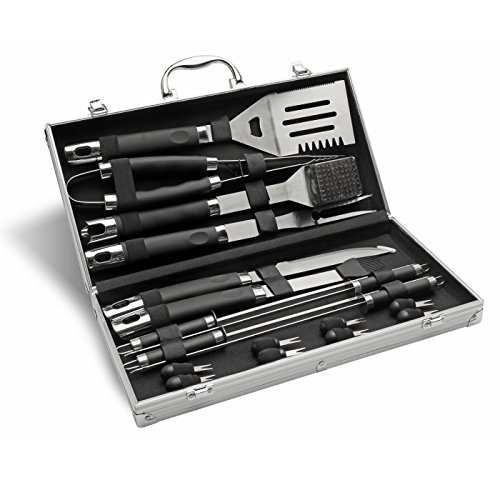 Monbix BBQ Grill Accessories 19 Piece Stainless Steel Utensils with TPR Grips Heavy Duty Grill Set with Aluminum Storage Case