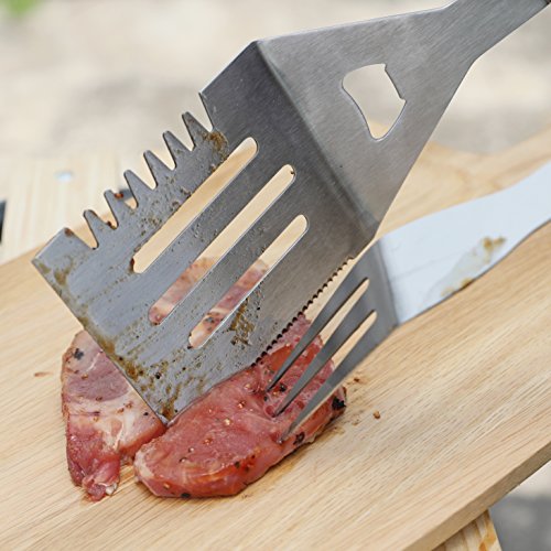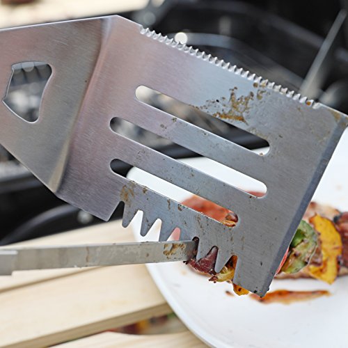- The Most Complete and Professional Kit - Our BBQ grill set contains almost everything you need for grilling, includes 1 spatula (that has 4 functions), 1 tong, 1 fork, 1 knife, 1 brush, 1 basting brush, 4 skewers, 8 corn holders.