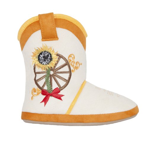 Binding : Apparel Product Description This cowgirl's style is as lovely as her daydreams-afternoons spent on the prairie, soaking up the golden beams of warm sunlight and grounded by the earthy sweet scent of the tall grass. Get ready to charm with these sweet styles! Embroidered on faux suede and lined with snuggly-soft faux sheepskin. Lounge-friendly and fluffy, they have a sole rugged enough so you can wear them even when sauntering out to get the mail. Sizes include: small (6 ½ - 7 ½) medium (8 - 8 ½) large (9 - 9 ½) xlarge (10 - 10 ½) 0