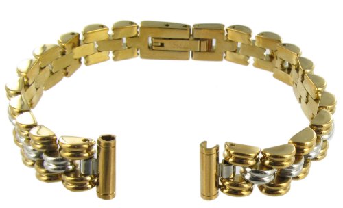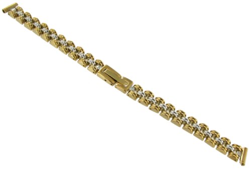 -. Title : 10mm Speidel Gold and Silver Tone Elegant Adjustable Solid Link Fold Clasp Watch Band 685/15