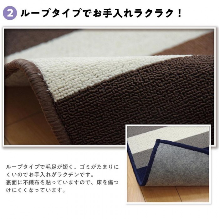 fk094igrjs学習机のデスクカーペットとしても使用可能なルームマットですシンプルなデザインなので、ベッドサイド、ソファ前などにも使えます サイズ 約133×170cm 個装サイズ:13×13×134cm 重量 個装重量:2500g 素材・材質 表地:ポリプロピレン100% 裏地:ポリエステル100%(不織布) 仕様 手洗い可 生産国 中国 誰でも使いやすいシンプルなデザイン 学習机のデスクカーペットとしても使用可能なルームマットですシンプルなデザインなので、ベッドサイド、ソファ前などにも使えます