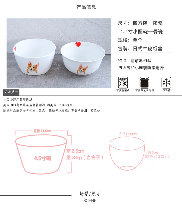 短腿柯基周边家用陶瓷餐具米饭碗小汤碗单人学生用饭碗麦片早餐碗