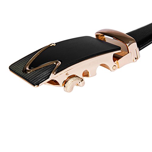 EASY USE - Just slide the belt into the buckle and pull the belt through, the buckle simply auto locks the belt, to release the belt, gently push the lever on the side of the buckle and lock will snap. Simple, smooth and sleek.