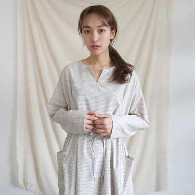 - 잔잔한 그리드 체크 패턴의 롱 원피스입니다.