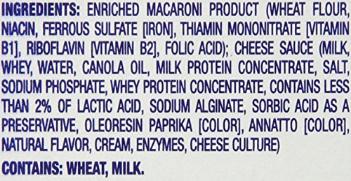 -. Feature : Made with enriched macaroni / Rich in calcium, iron and protein / Made with real Kraft cheese / Makes a quick and easy side dish or meal