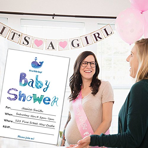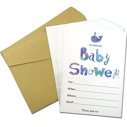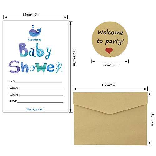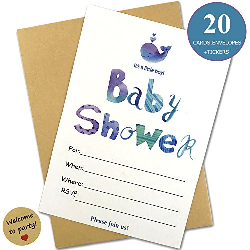 SHAN RUI 20Sets Baby Shower Lovely Whale Invitations Boy with Envelopes and Sealing Stickers