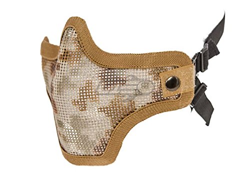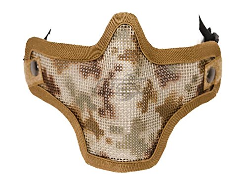 -. Binding : Misc. -. Brand : Bravo! -. Color : Color/Tan -. Feature : Bravo has taken their incredibly popular Strike mesh half face mask and made it even better and more protective. The Bravo V2 Strike Metal Mesh Lower Face Mask is a great mask for any player in any scenario, and is designed to be paired with your ANSI-approved goggles and provide protection for the lower half of your face and ears while your goggles protect your eyes. The mask is made of a lightweight, extremely durable metal mesh that gives you ample ventilation to be able to breathe without fogging up your mask, while still protecting your teeth and skin from bb's. The mask rests on the bridge of your nose and the tops of your cheeks and is secured by elastic straps that wrap behind and over your head. Overall, the Bravo V2 Strike Mesh Mask is a great option for anyone looking for a new mask. Send questions to my messages -. Label : Bravo -. LegalDisclaimer : high quality and great products! -. Manufacturer : Bravo -. MPN : none -. PackageQuantity : 1 -. PartNumber : none -. ProductGroup : Sports -. ProductTypeName : SPORTING_GOODS -. Publisher : Bravo -. Studio : Bravo -. Title : BRAVO Tac Gear Mesh Half Mask Desert Camo