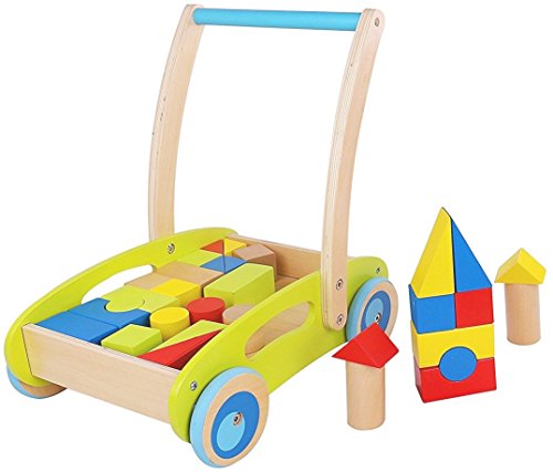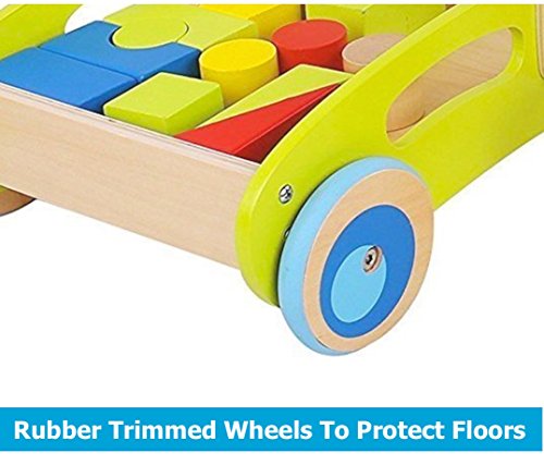 Make your child's first steps memorable and fun. With its solid, sturdy construction, the block and roll baby walker is an ideal widget for little ones to advance their grasping and balancing techniques. Complete hands-on baby walker experience; perfect for early stages of walking while also developing essential baby mobility skills. Also includes 33 pcs wooden playing blocks, with multiple shape cut-outs, stimulating colors and natural wood that promotes color recognition, matching, stacking and sorting skills. Push, Pull, and Play! Keep your kids amused and engaged for hours. Made with strong wooden frame, that allows kids a safe and stable platform in learning to walk each day. This is an educational block and roll set that not only encourages a child's imaginative play, but also enhances their creativity and cognitive skills. Great addition to any home, nursery, playroom, schools, waiting rooms, and other child-friendly play area And to top it off, this baby walker serves as a storage compartment, allowing easy clean up and convenient storage. No more messy play rooms!