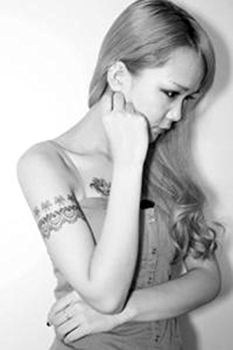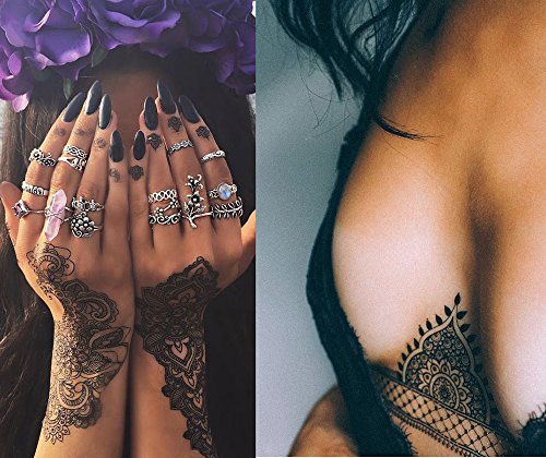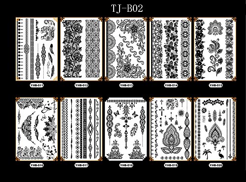 10 Sheets Black Lace Tattoos Temporary Paper Sexy Body Tattoo Sticker Water Transfer Tattoo for Professional Make Up Dancer Costume Parties, Shows (TJ-B02)