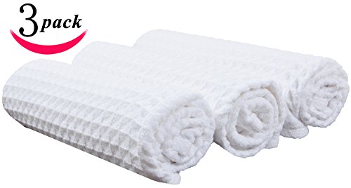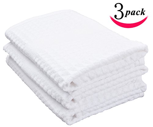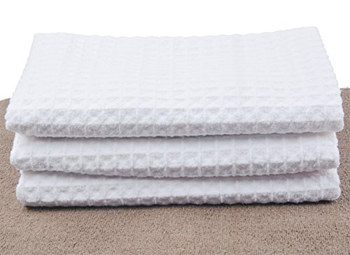 Sinland 400 GSM Microfiber Waffle Weave Kitchen Towels Drying Cloth 3 Pack 16inch X 26inch (16inch X 26inch, White)