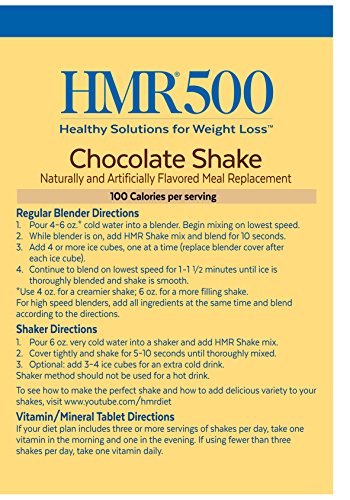 HMR 500 Chocolate whips into a deliciously rich, thick and filling shake. Each HMR 500 serving provides 10 grams of protein for 100 calories. Multivitamin/mineral tablets included.