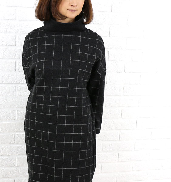 PUPULA(ププラ) ウール ウインドペンチェック柄 オフタートル ワンピース・343209