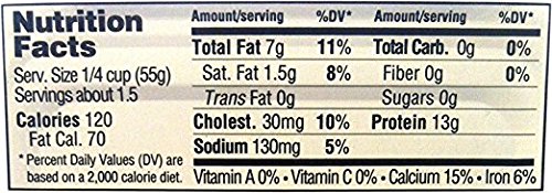 13 grams of protein per serving, zero carbohydrates, and also a good source of calcium