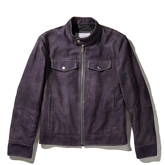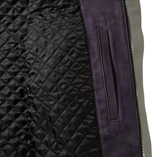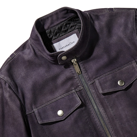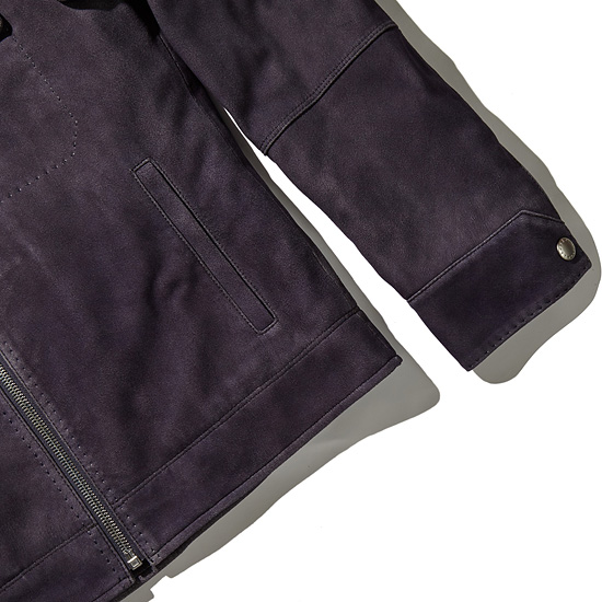 - 빈티지한 워싱과 퍼플 컬러가 고급스러운 남성 레더 블루종 자켓.
