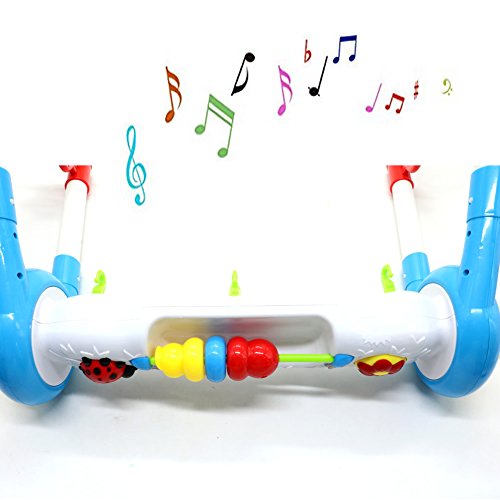 -. Feature : 3 grow-with-me stages: lay and play, sit and play and stand and play / Colors, lights and patterns are a great way to help stimulate your baby's visual sense / The lights, sounds, music and colorful, textured detachable toys help stimulate baby's developing senses of sight, hearing and touch. / Use 2 AA 1.5V batteries (Not Included)