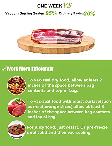 【IDEAL FOR PRESERVING YOUR FOOD】 the sealer helps to preserves the freshness and quality of your food, reduces food waste. Preserving freshness of food up to 5 times longer.A smart kitchen sealer for store your food bought in bulk and leftover!