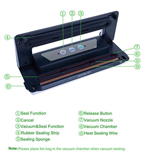 【STARTER KIT INCLUDED】 In addition to the vacuum sealer, the package also includes an vacuum roll bag (0.28m * 3m) .Reusable and Waterproof. 1 year warranty with customer service and technical assistance.