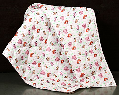 White and Pink Baby Quilt Warm and Snuggly Toddler Blanket Animal Printed Crib Comforter for Ne...
