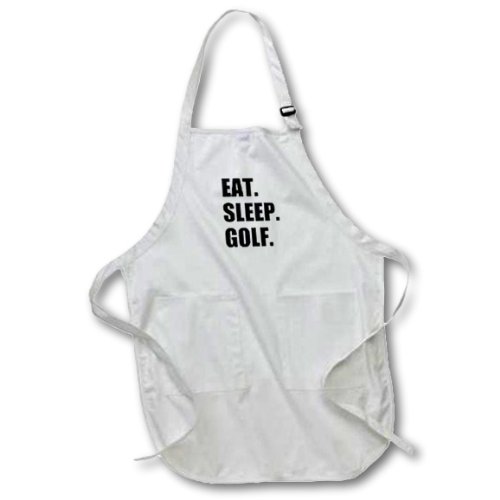 3dRose apr_180407_4 Eat Sleep Golf. Fun Text Gifts For Golfing Enthusiasts and Pro Golfers Full Length Apron with Pockets, 22 by 30-Inch, Black