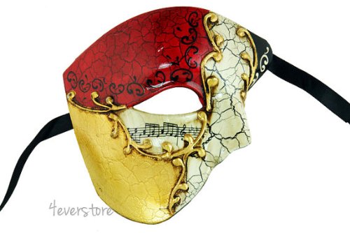 -. Binding : Misc. -. Brand : 4everstore -. Feature : Special Edition Venetian Half Mask / Popular Choice for costume events, Mardi Gras, mask parties, etc. / This mask has been Voted Most Popular for its attention to half face mask. / The Venetian Mask is secured with two black silk ribbon ties for easy adjustment. -. ProductGroup : Beauty -. ProductTypeName : BEAUTY -. Title : Phantom of the Opera - Half Men Face Musical Mask Collection - Venetian Masquerade Mask by 4everstore