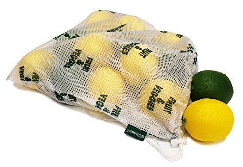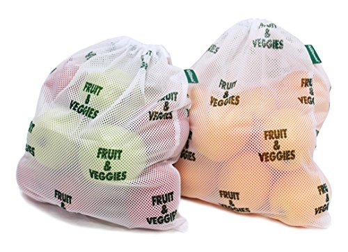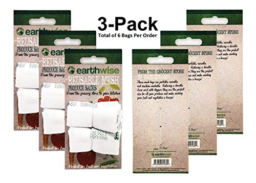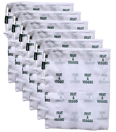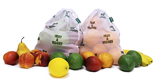 Earthwise Reusable Mesh Produce Bags Premium Reusable w/toggle closure and Fruit and Veggies Print ( 6 Pack)