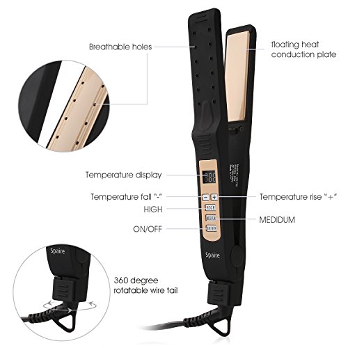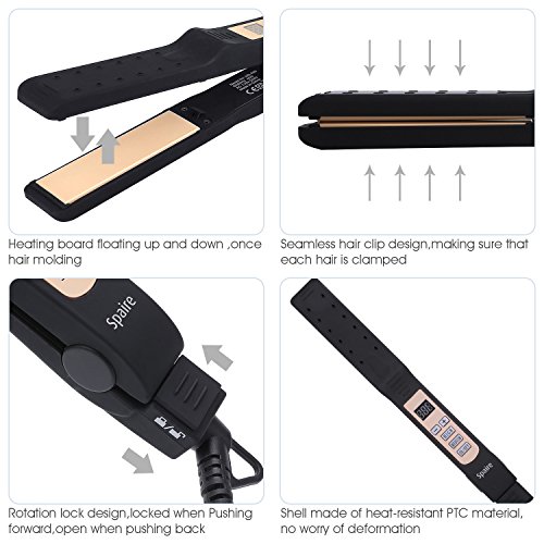 Spaire Hair Straightener Negative Ionic Wet Hair Applicative PTC Ceramic Flat Iron Hair Styler with LCD Fast Heating Temperature Control and Lock Design