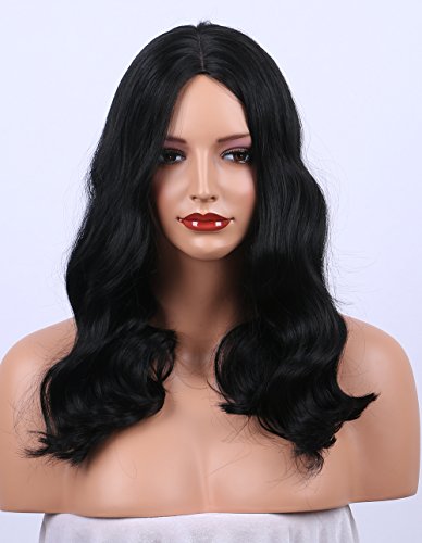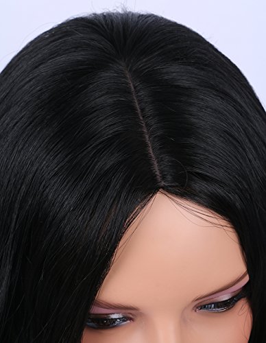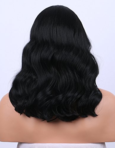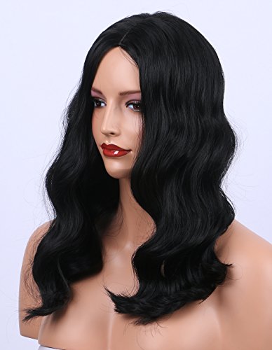 K’ryssma Synthetic Wigs - High Quantity Shoulder Length Wavy #1B Natural Black Wig for Women Middle Part