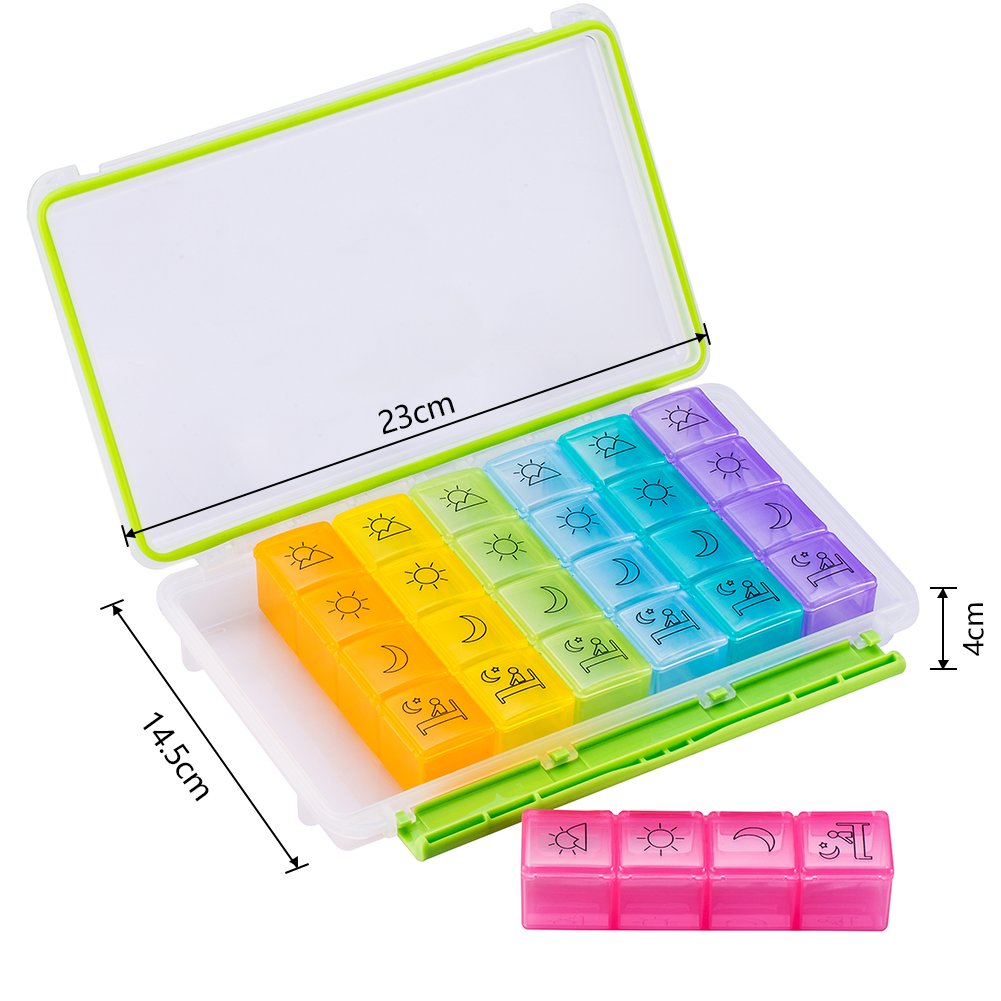 There are seven cases by day, and since the day's case is divided into four, one in the morning, the day, the night, and before going to bed, you can store the medicine for one day separately for each hour.