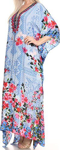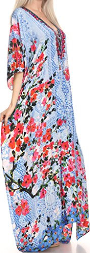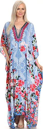 This caftan dress cover up is made of a lightweight material with no structure so that it drapes effortlessly and elegantly. It is very forgiving and loose fitting for maximum comfort and best wear. Colors are very vibrant and unique. Each dress is handmade and timeless. This caftan dress is very lightweight, and elegant that it can be worn a multiple of different ways. The color combinations are unique. Can be worn as a dress, coverup at the beach, or for parties and nights out during the summertime! Hand wash separately in cold water. Line dry. Imported. | Material: 100% Poly Crepe.