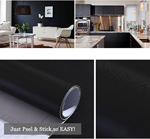 HaokHome H020 Peel & Stick Wallpaper 23.6in x 19.7ft Black Self Adhesive Contact Paper Wall Furniture Sticker