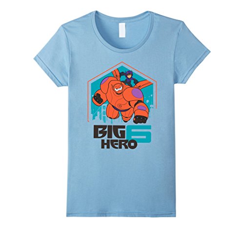 Womens Disney Big Hero 6 Baymax City Overview Graphic T-Shirt XL Baby Blue