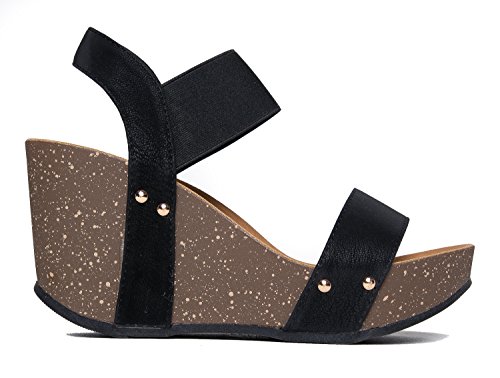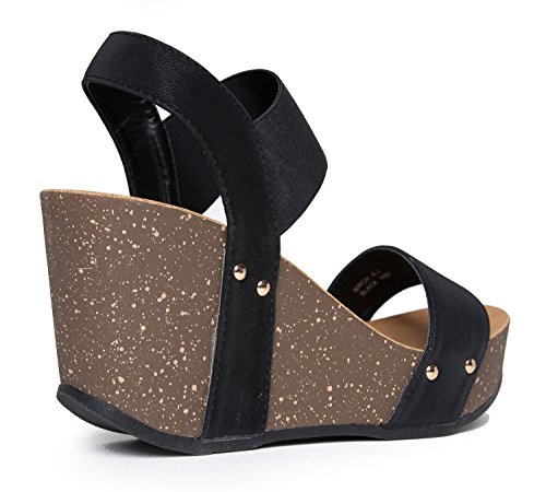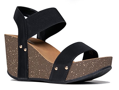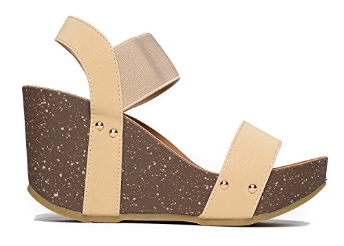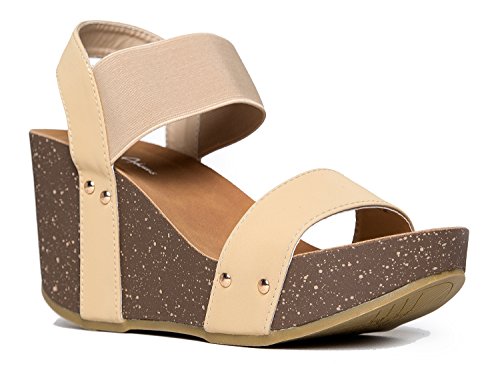 Binding : Apparel Product Description STYLISH, LIGHT AND COMFORTABLE: Strap on these wedges confidently knowing that they're both comfortable and stylish. ?Let your feet breath with these cute open-toed heels. You won't have to worry about every step with how light these wedges are, too! VERSATILE COLORS: These heels are offered in versatile colors perfect for every occasion! With these neutral colors, you'd be able to rock them both at a day out with your girlfriends or a night out celebrating a birthday! STAND TALL AND CONFIDENT: ?Show off the quirky design of the wedge topped off with classy minimalist embellishments on the side. These wedges provide both the boost to power through your day and make your legs look awesome. Go ahead ? walk confidently all day and turn heads while you’re at it! DON'T LET STRAPS STRAP YOU DOWN: Glide your feet effortlessly into these wedges with the elastic bands as its straps. These wedges are practically made for you with the straps comfortably hugging your feet and soles that conform to your unique foot shape. You’ll want to wear these every single day! MEASUREMENTS: Heel 3.75”. Runs true to size. 0