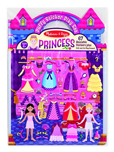 Tell a puffy-sticker story on reusable background scenes! Each set comes with a folding double-sided background card and 65+ reusable puffy stickers to outfit sticker models, fill an enchanting castle, decorate an undersea treasure trove, and more. Reusable backgrounds fill both sides of the sturdy, stand-up cards, so kids can build a multi-page story to "read" or just have fun rearranging the pieces for endless sticker fun. The puffy stickers mix, match, and layer in any combination! Bonus: The sturdy background board folds to neatly store it all away, and a diecut handle makes these fold-and-go play sets great for travel. Bundle includes three sets in three pretty themes: mermaid, princess, and dress-up.Feature