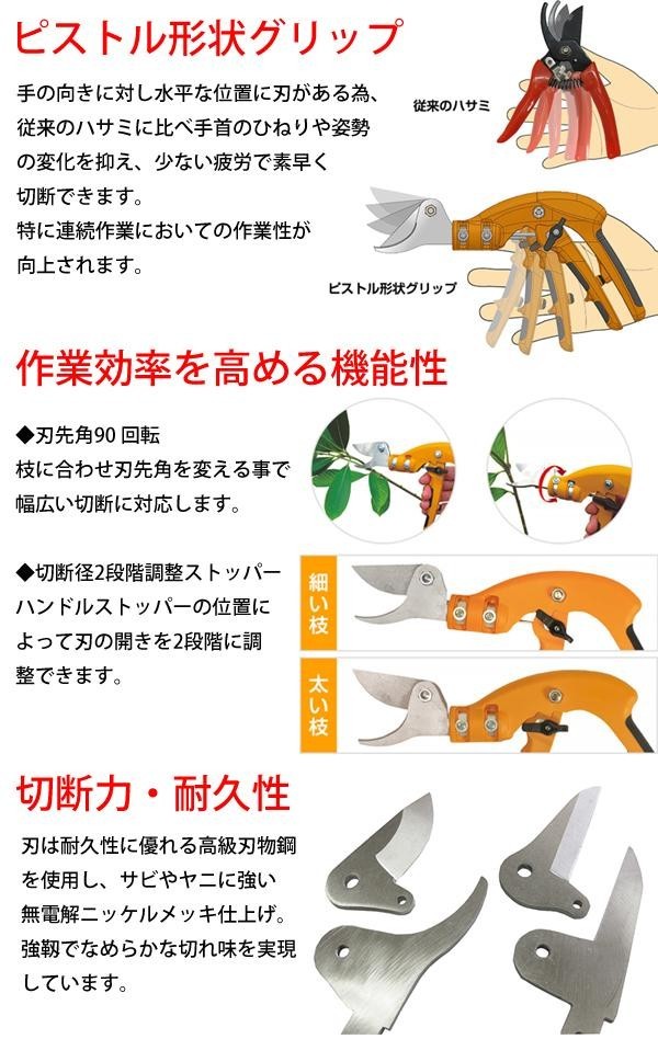 | 仕様 | 切断径:生木約10mm 刃先角90度回転 2段階ストッパー |