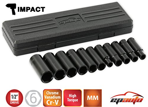EPAuto 1/2-Inch Drive Metric Deep Impact Socket Set, 11 Sockets