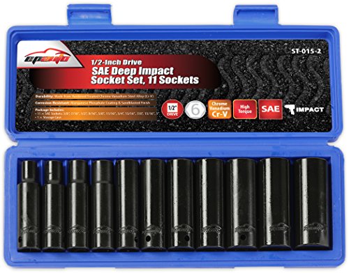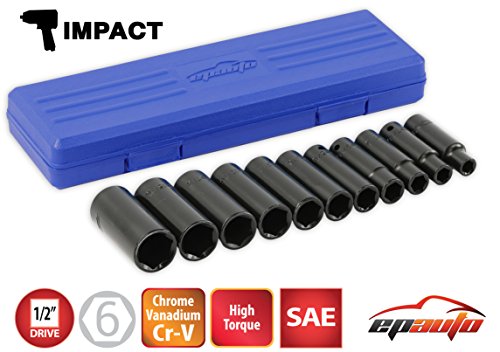 EPAuto 1/2-Inch Drive SAE Deep Impact Socket Set, 11 Sockets