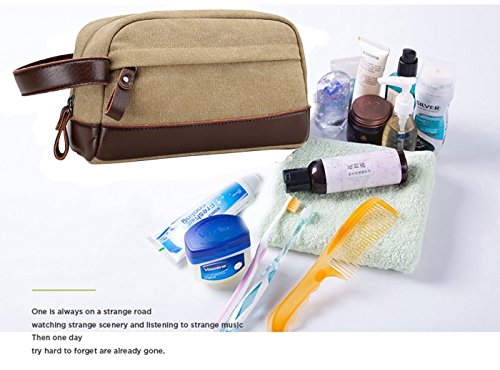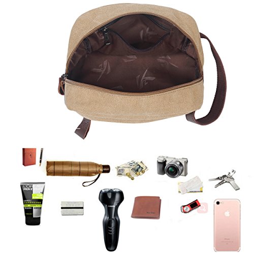 JAKAGO Portable Travel Toiletry Bag Multifunction Canvas Cosmetic Makeup Pouch Vintage Wash Bag Dopp Kit Cosmetic Shaving Bags Organizer with Handle...