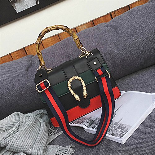 -. Feature : Made of durable PU leather with good sense of touch,Bamboo handle make of A sturdy plastic .compact structure with the dimension of 27cm*19cm*10cm / Beautiful color, which is the fashionable style for the year of 2017, and various types can be at your choice / The shoulder bag strap Color ribbon design , it will also give you an impression of uniqueness. / Our handbag contains one large main pocket and another small side pocket inside, all can be easily opened . you can have your make up, phones, wallets and keys and so on in there. / Our guarantee: refund is available if you are not not satisfied with our cross body bag at 100%.
