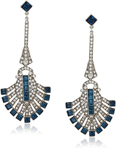 -. Title : Ben-Amun Jewelry "Deco" Swarovski Crystal Sapphire Deco Fan For Bridal Wedding Anniversary Drop Earrings