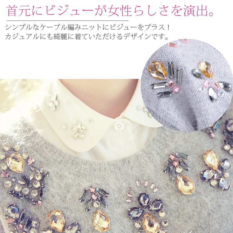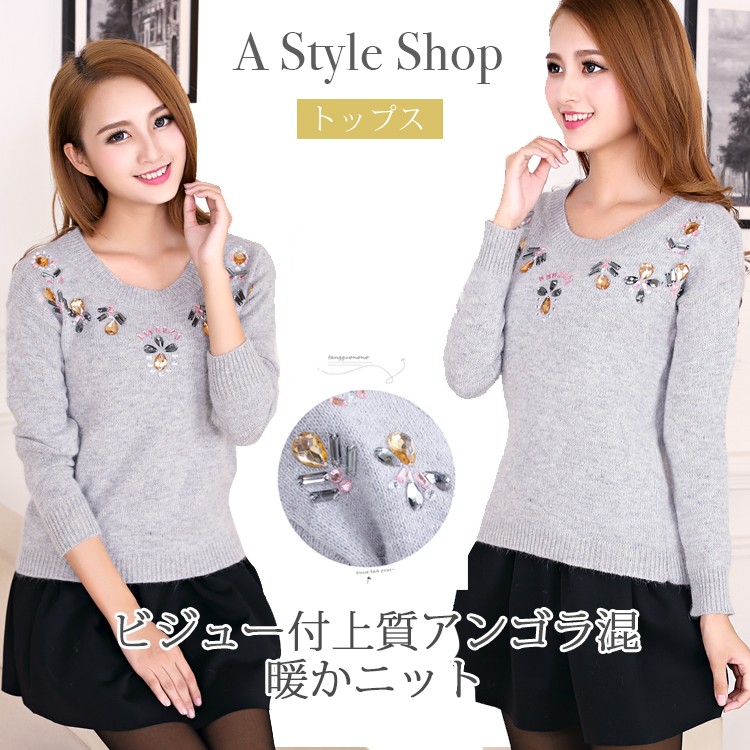『決算セール』『送料無料』ビジュー付き上質アンゴラ混ニット ニット ☆ ニット レディース トップス チュニック カシミヤ ワンピ 洗えるニット 『セール品のため、返品交換不可』