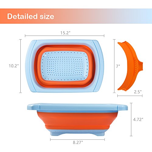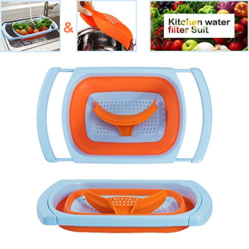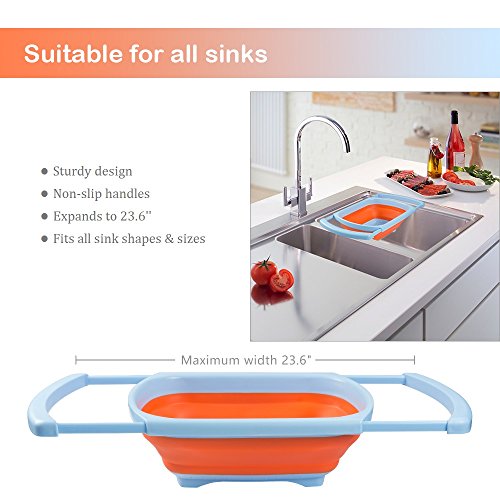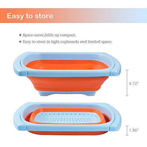 PROS of Collapsible Kitchen Colander : 1.Non-toxic materials and BPA free. 2.Dishwasher safe and built to last. 3.Easy to use and clean. 4.Non-slip handles and comfortable to grip. 5.Easy to store in tight cupboards and limited space. 6.Bright color and sleek styling looks great in any kitchen. 7.Fits most sink shapes sizes, compact space-saver design collapses and folds.