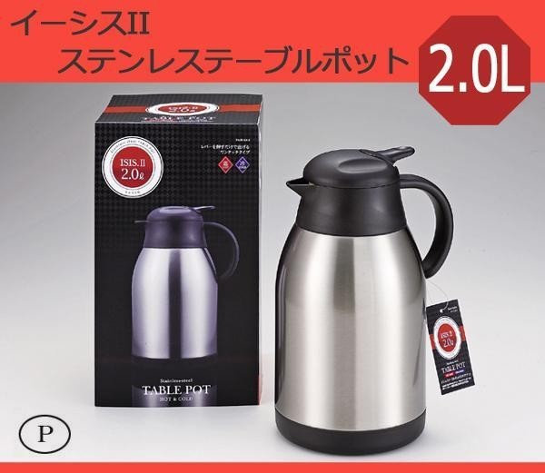 | レバーを押すだけで注げるワンタッチタイプ。容量2.0Lのステンレステーブルポットです。 |