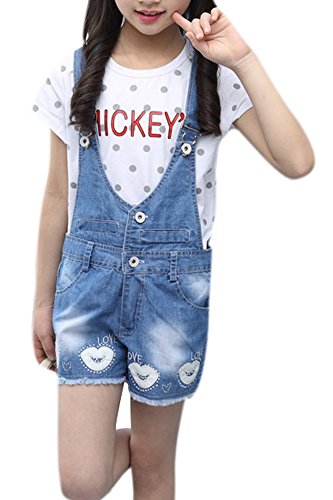 -. Title : Girl's V-neck Cute Sweety Denim Jumpsuits Mini Short Jeans Overall Shortall Fits Big Kids