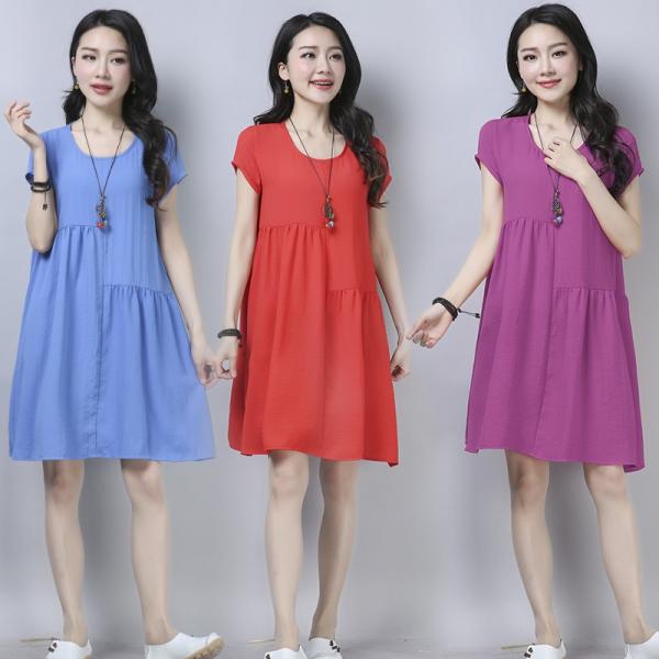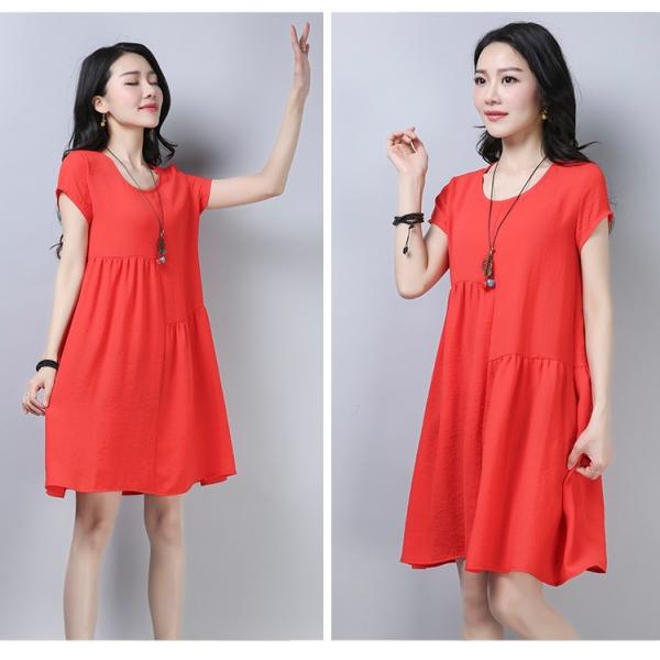 Aラインスカートがゆったりとしたフォルムのワンピースです。