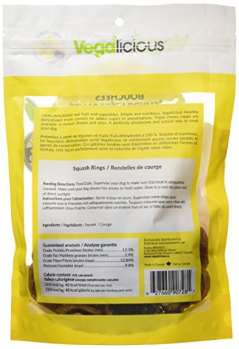 -. Title : Vegalicious 1 Pouch 90728 Squash Rings Healthy Dehydrated Dog Treats, 181.4g/6.4 oz