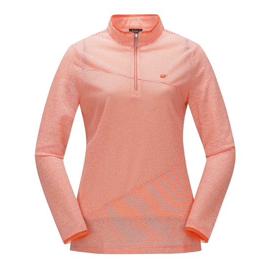 - 핀 스트라이프 패턴 디자인의 여성 티셔츠.