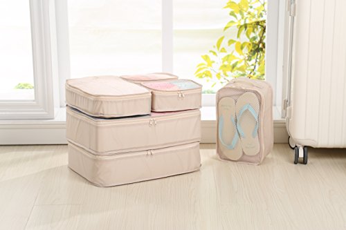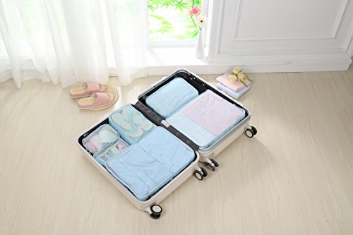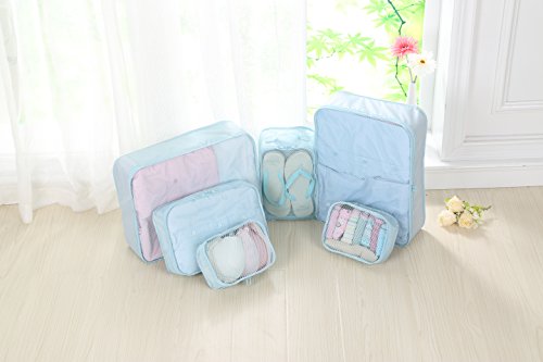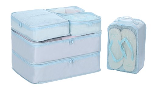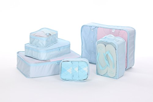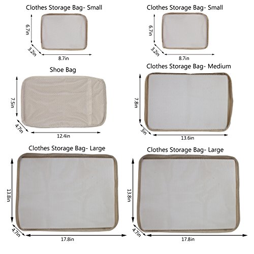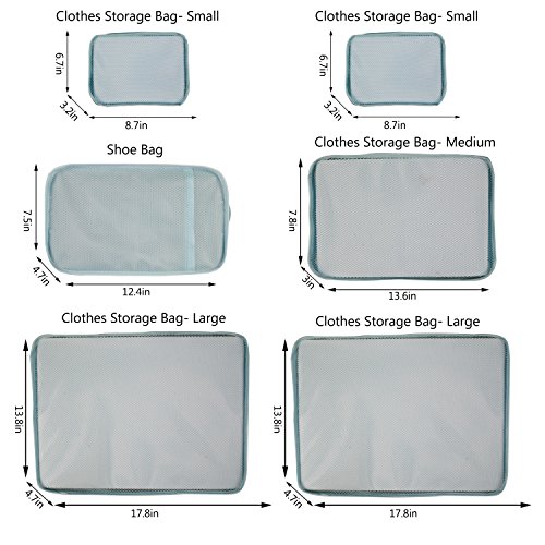 -. Feature : 1. Multi-function & Keep Lage Tidy and Clean. We have usage proposal P.R.Inted inside each storage bag and mesh-design on storage bags. Easy to regular and find your lage! / 2. Ultra Durable and Lightweight. Using custom-built oxford fabric, our packing cubes are durable and lightweight. All 6 pieces weight less than 1 lb, surely can be your best travel helper but without burden. / 3. Smooth and Durable Zipper. We use SBS zipper, which is easier to use. / 4. Fit 24/25 inch suitcase. / 5.Most of so called Packing Cubes are not all coming with CUBES. While this one is definately REAL even with a shoe bag which uaually value $10 or more singally.