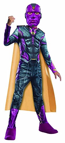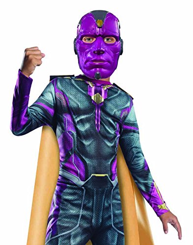 -. Binding : Toy -. Brand : Rubie's -. Color : Orchid,Tri-Evergreen -. Department : boys -. Feature : Available in Sizes: Small, Medium and Large / Item Includes: Jumpsuit with Boot Tops, Cape and Mask / Material: 100% Polyester Exclusive of Trim / Care Instructions: Hand Wash in Cold Water w/ Mild Detergent or Shampoo - AIR DRY -. Label : Rubies - Domestic -. Manufacturer : Rubies - Domestic -. Model : 610451_L -. MPN : RU610451 -. PackageQuantity : 1 -. PartNumber : RU610451 -. ProductGroup : Toy -. ProductTypeName : CHILDRENS_COSTUME -. Publisher : Rubies - Domestic -. Studio : Rubies - Domestic -. Title : Rubie's Costume Avengers 2 Age of Ultron Child's Vision Costume